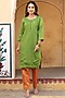 Featuring a sheen green kurta in chanderi base with handmade potli buttons and an attached cotton lining. It is paired with contrasting orange kimkhab pants having an elasticated waist and a side pocket and a pure banarasi silk dupatta.