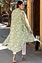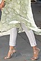 Featuring a white and green shrug in chiffon base with jaal and floral hand block print. It is paired with a matching rayon inner and white cotton slub cigarette pants.