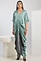 Featuring a blue draped dress in bamberg satin base with zari detail. Accentuate it with statement earrings and heels for evening wear or cocktail soirees.