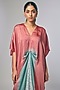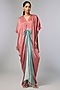 Featuring a pink draped dress in bemberg satin base with shibori hand print. Accentuate it with dangler earrings, heels and a statement clutch for a stylish look, perfect for dinner or evening soirees.