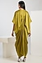 Featuring a yellow draped dress in bamberg satin base with zari detail. Accentuate it with statement earrings and heels for evening wear or cocktail soirees.