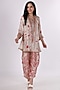 Cream & Pink Gajji Silk Floral Cowl Pant Set