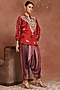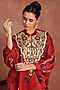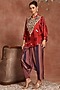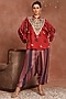 Featuring a red kaftan top in gajji silk base, adorned with hand embroidered yoke. It is paired with multi-colored gajji silk flap pants. Style this pant set with some statement oxidised jewellery, a sling bag, and embellished juttis to add a touch of glamour.