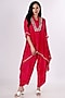 Featuring a pink kaftan top in habutai silk base with tie-dye and hand embroidery. It is paired with cowl pants. Accentuate it with hoop earrings, a sling bag and block heels, ideal for evening soirees or a casual look.