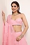 Featuring a baby pink lehenga in organza base with floral thread embroidery. It is paired with an embroidered blouse having a sweetheart neckline and an organza embroidered scalloped dupatta. Accentuate it with silver jewellery and embellished heels for a wedding, engagement or sangeet ceremony.