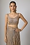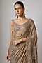 Featuring a champagne gold saree in tissue silk base with sequins embroidery. It is paired with an embroidered blouse. Accentuate it with zircon or meenakari jewellery, a sleek bun and metallic heels for a complete look, perfect for wedding, sangeet or engagement ceremonies.