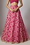 Featuring a magenta lehenga in organza base with zari weave embroidery. It is paired with a blouse and a georgette dupatta. Accentuate it with statement kundan jewellery and embellished heels for a stylish ensemble, ideal for engagement ceremonies, haldi or mehendi functions.