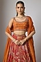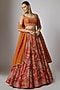 Orange Tissue Silk Floral Motifs Printed Lehenga Set