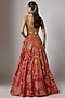 Featuring an orange lehenga in tissue silk base with floral motifs print. It is paired with a hand embroidered blouse and a dupatta. Accentuate it with statement kundan jewellery and embellished heels for a stylish ensemble, ideal for weddings, engagement ceremonies or sangeet nights.