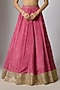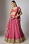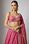 Featuring a pink lehenga in crepe and georgette base, adorned with bandhani print, hand and machine embroidery. It is paired with a blouse and an embroidered dupatta. This ensemble is perfect for mehendi, sangeet and wedding celebrations.