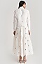 Featuring an ivory dress in handwoven jamdani base with geometric pattern. It is paired with a matching jacket and a belt.