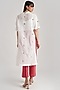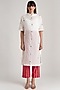 Featuring an ivory tunic in handwoven jamdani base with geometric pattern. It is paired with contrasting kala cotton trousers and a scalloped inner blouse.