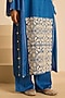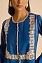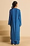 Featuring a blue straight kurta in cotton silk base with dori embroidery, tassel, ghungroos and pearl detail. It is paired with pants and a dupatta. Accentuate it with statement jewellery and heels for a festive occasion, an intimate pooja or sangeet ceremony.