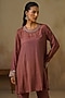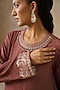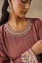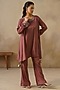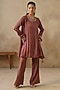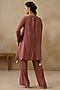 Featuring a brown draped top in cotton silk base with metal coins, ghungroos and tassel embroidery. It is paired with bell bottom pants. Accentuate it with statement jewellery and heels, ideal for festive occasions or family gatherings.