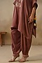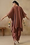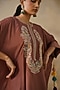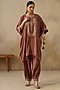 Featuring a brown kaftan in cotton silk base with embroidery. It is paired with salwar pants. Accentuate it with statement jewellery and heels for a festive look.
