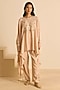 Featuring a peach draped top in cotton silk base with dori embroidery, tassel, ghungroos and pearl detail. It is paired with cigarette pants. Accentuate it with statement jewellery and heels for a festive occasion or sangeet ceremony.
