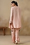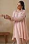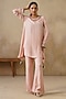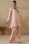 Featuring a pink draped top in cotton silk base with metal coins, ghungroos and tassel embroidery. It is paired with bell bottom pants. Accentuate it with statement jewellery and heels, ideal for festive occasions or family gatherings.