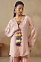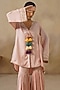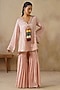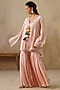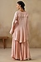 Featuring a pink high-low jacket in cotton silk base with metal coins, dori and thread embroidery. It is paired with gharara pants. Accentuate it with statement jewellery and heels, ideal for festive occasions or family gatherings.