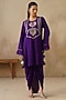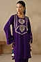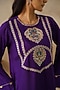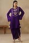 Featuring a purple straight shirt top in cotton silk base with metal sequins, ghungroos, tassels, dori and thread embroidery. It is paired with a draped skirt. Accentuate it with statement jewellery and heels, ideal for festive occasions or diwali parties.