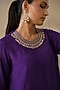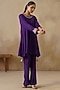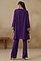 Featuring a purple draped top in cotton silk base with metal coins, ghungroos and tassel embroidery. It is paired with bell bottom pants. Accentuate it with statement jewellery and heels, ideal for festive occasions or family gatherings.