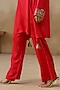 Featuring a red draped top in cotton silk base with metal coins, ghungroos and tassel embroidery. It is paired with bell bottom pants. Accentuate it with statement jewellery and heels, ideal for festive occasions or family gatherings.