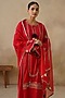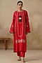 Red Cotton Silk Thread Embroidered Straight-Cut Kurta Set