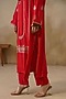 Featuring a red straight-cut kurta in cotton silk base with tassel hangings, pearls, ghungroos, dori and thread embroidery. It is paired with pants and a dupatta. Accentuate it with statement earrings and heels for festive occasions.