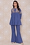 Featuring a royal blue top in rayon flex base with embroidery and metal sequin hangings. It is paired with matching bell bottom pants.