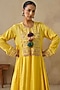 Featuring a yellow kalidar kurta in cotton silk base with pearls, tassels, dori and thread embroidery. It is paired with salwar pants and a dupatta. Accentuate it with statement jewellery and heels, ideal for festive occasions or family gatherings.