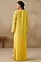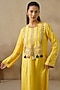 Featuring a yellow straight-cut dress in cotton silk base with pearl, tassels, ghungroo, thread and dori embroidery. Accentuate it with statement jewellery and heels for an evening look.