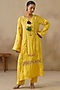 Featuring a yellow straight-cut kurta in cotton silk base with tassel hangings, pearls, ghungroos, dori and thread embroidery. It is paired with pants and a dupatta. Accentuate it with statement earrings and heels for festive occasions.