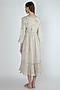 Featuring a beige midi dress in pure linen base. It has tonal floral hand embroidery and real shells as toggles.