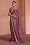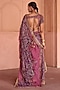 Featuring a dusty rose saree in organza base with hand embroidery. It is paired with a blouse and a crepe underskirt. Accentuate it with gold jewelry and heels, perfect for weddings, receptions and festive occasions.