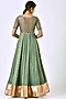 Featuring a green anarkali in chanderi jacquard base with embroidery. It is paired with matching flared pants and a dupatta.
