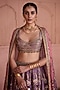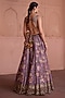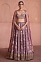 Featuring a lilac lehenga in dupion base with floral print and metallic embellishment. It is paired with an embroidered choli and a chinon chiffon color-blocked dupatta. Accentuate it with traditional gold jewellery and heels, perfect for weddings, sangeet and festive celebrations.