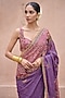 Featuring a lilac saree in organza base with hand embroidery. It is paired with a sequins blouse and a crepe underskirt. Accentuate it with gold jewelry and heels, perfect for weddings, receptions and festive occasions.