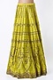 Featuring a lime green lehenga in raw silk base with cutdana, sequins and glass beads hand embroidery. It is paired with a matching blouse having an attached net drape.