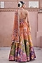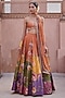 Featuring a multi-colored lehenga in dupion base with floral hand embroidery. It is paired with an embroidered blouse and a chinon chiffon dupatta having sequins detail. Accentuate it with traditional gold jewellery and heels, perfect for weddings, haldi ceremony and festive celebrations.