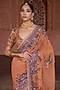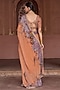 Featuring a peach saree in georgette base with sequins and floral motifs hand embroidery. It is paired with an embellished blouse and a crepe underskirt. Accentuate it with gold jewelry and heels, perfect for weddings, receptions and festive occasions.