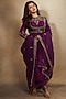 Featuring a purple kurta in pure raw silk base with hand embroidery. It is paired with salwar pants, a velvet bolero and a pure silk organza dupatta. Accentuate with statement jewellery and heels for a complete look.