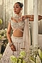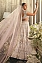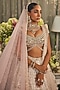 Featuring a blush pink lehenga in raw silk base with sequins, beads, crystals, stones, zardosi and thread embroidery. It is paired with a blouse having tassel details and a dupatta. Accentuate with heavy jewellery set and heels for a modern bridal look.