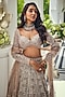 Featuring a dusty pink lehenga in net base with crystal and cutdana embellishments. It is paired with an embroidered full sleeves blouse having a sweetheart neckline and a dupatta. Accentuate with heavy jewellery set and heels for wedding or engagement ceremonies.