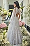 Featuring an ice blue fish cut lehenga in organza base with embroidery. It is paired with a net sweetheart blouse and a dupatta. Accentuate with heavy jewellery set and heels for wedding, cocktail or engagement ceremonies.