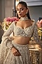 Featuring an ivory and gold shaded lehenga in net base with sequins, crystals, cutdana, pearl and geometric motifs embroidery. It is paired with a blouse and a dupatta. Accentuate with heavy jewellery set and heels for wedding, cocktail or engagement ceremonies.