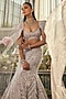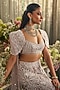 Featuring a lavender mermaid lehenga in net base with pearls, sequins, crystals, cutdana, geometric motifs and floral embroidery. It is paired with a scoop blouse and detachable shoulder paded drapes. Accentuate with heavy jewellery set and heels for wedding, cocktail or engagement ceremonies.
