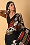 Featuring a black saree in satin georgette base with digital print and satin border detail. It is paired with an unstitched blouse. Accentuate it with statement jewellery and heels for a festive ceremony.