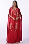 Crimson Red Viscose & Georgette Embroidered Jacket Set
