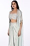 Featuring a grey cape in viscose and organza base with dhaga embroidery. It is paired with a raw silk bustier having sequins and bead work, including a satin pre-draped skirt. Accentuate it with silver earrings and stiletto heels for a refined ensemble, ideal for sangeet ceremonies or cocktail parties.