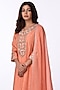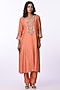 Peach Raw Silk Mirror Embroidered Kurta Set