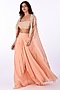 Featuring a peach cape in viscose base with dhaga embroidery. It is paired with a raw silk crop top having sequins and thread work, including a satin draped skirt. Accentuate it with silver earrings and stiletto heels for a refined ensemble, ideal for sangeet ceremonies or cocktail parties.
